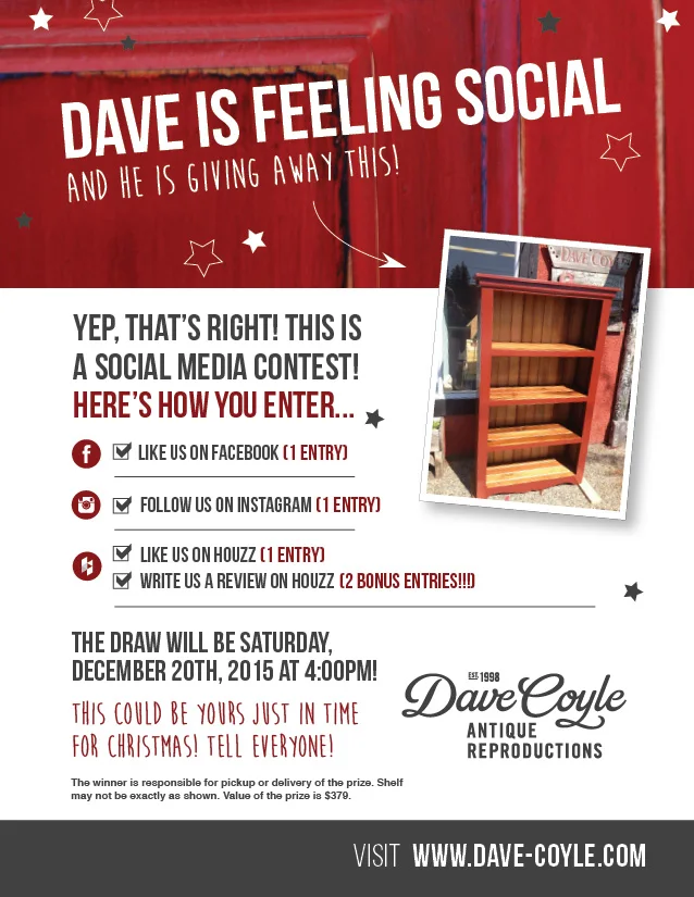 Enter this awesome social media contest and win a Dave Coyle Bookcase! Here's how you enter!