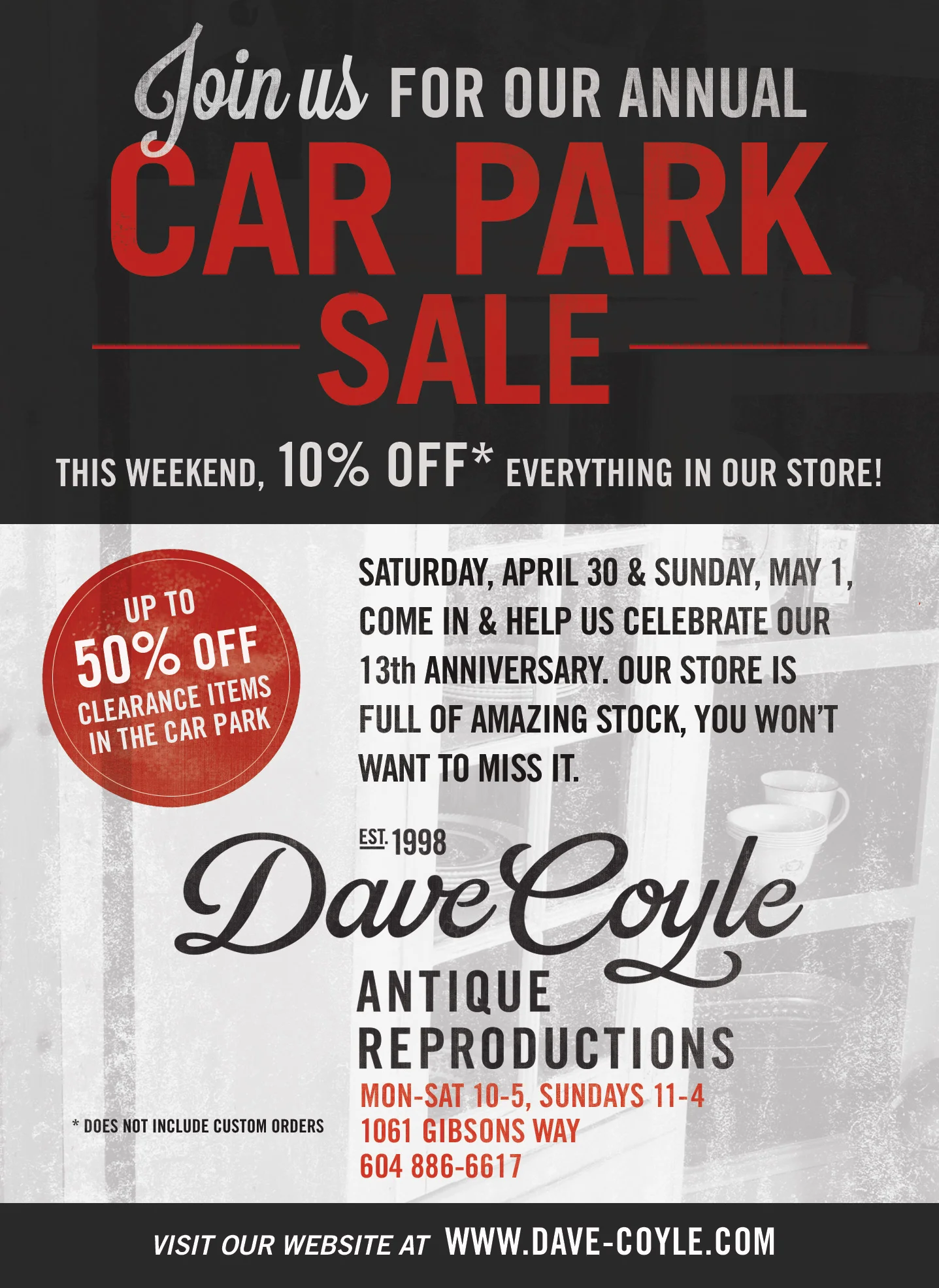 This weekend, 10%* everything in the entire store and up to 50% off clearance items in the Car Park!